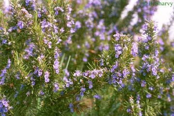 Rosemary likes sunny weather and dry, sandy, soil. It resists drought like a real trooper, but needs the humidity typical of coastal areas (which you might deduce with some knowledge of Latin...see Comment below); strong winds might pose a problem for young plants. Reports of average hardiness are inconsistent, ranging from 25¡ F to 15¡ F; choosing the right cultivar is probably critical in zone 8 and below. Wet soil will reduce hardiness. Foliage is sparse when the plant is grown in rich soil. Fertilize with phosporous and potash if necessary, but not nitrogen. Ideal pH is 6.8; tolerates pH from 5 to 8.5. There are some reports that deer spurn rosemary. Propagation: Rosemary's babies can come from seed or 6" cuttings in spring.